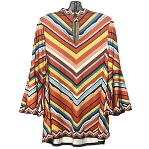 NITT by Flying Tomato chevron top 70s groovy bell sleeve rust blue yellow size S