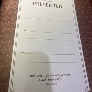 Condition: This bible has no marks within. Has been previously read and used, evidenced by some of the pages being dogearred and pressed out. Bonded leather is in fabulous shape with just one are two light scuff marks.