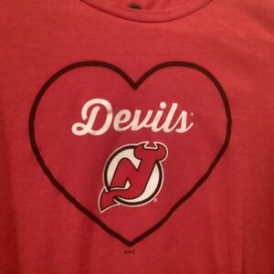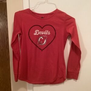 NJ Devils heart long sleeve t-shirt (XL-14). Slight spot in front; see photo. In good condition!