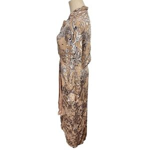 This elegant silky robe has the most amazing velvet burnout silk blend with intricate floral and geometric pattern.