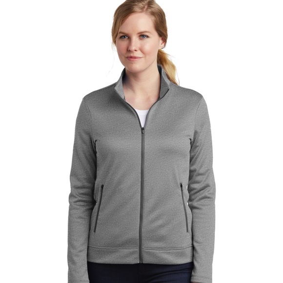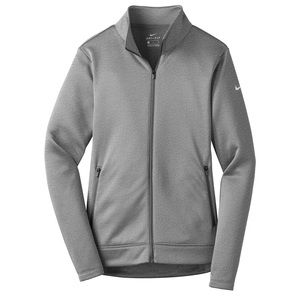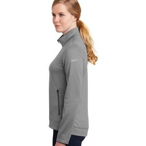 Designed to help keep you warm during cold-weather workouts, this breathable Nike Therma-FIT style manages moisture to perform. It’s designed with a zip-through collar, reverse coil zippers, front zippered pockets and open cuffs. Tailored for a feminine fit. The contrast heat transfer Swoosh design trademark is on the left sleeve. Made of 7-ounce, 100% polyester Therma-FIT fabric.