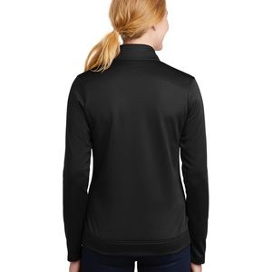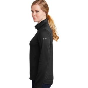 Designed to help keep you warm during cold-weather workouts, this breathable Nike Therma-FIT style manages moisture to perform. It’s designed with a zip-through collar, reverse coil zippers, front zippered pockets and open cuffs. Tailored for a feminine fit. The contrast heat transfer Swoosh design trademark is on the left sleeve. Made of 7-ounce, 100% polyester Therma-FIT fabric.