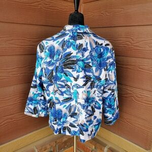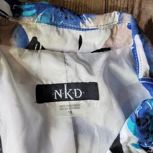 NKD Elegant Floral Cream and Blue Lined Blazer Jacket Women's Size 16 NWOT