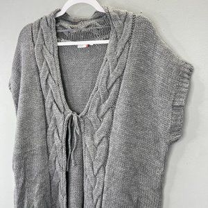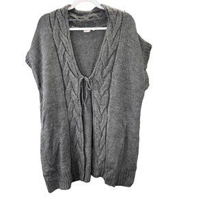 NKD Outfit Classic Cable Knit Cardigan Sweater 46 US L XL Gray Sleeveless NWOT