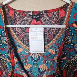 NLW Boho Paisley Mixed Print Mini Shift Dress-Size L (NWT)