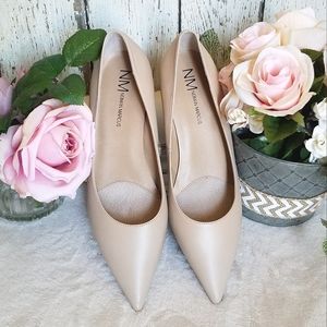 A classy pair of Neiman Marcus leather beige pumps that the perfect accessory to compliment your favorite pant suit or lovely dress. Brand new in original packaging!