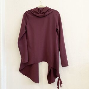 NM Neiman Marcus Drape Front Cardigan Burgundy Maroon Cotton Blend Small