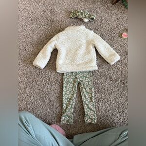 Adorable Nicole Miller set! The fleece is adorable and it’s the cutest outfit, perfect for chilly weather! Comes with leggings, fleece pullover, and matching headband.