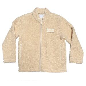Heavy duty sherpa fleece designed with a two-way metal zipper. Crafted in a wool blend. Complete with a high collar for extra warmth. Detachable brand tag.