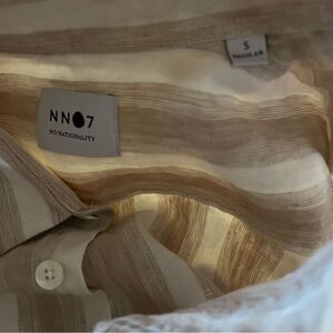 NN07 No Nationality Deon Striped Button-Front Shirt in Khaki Stripe S NWOT