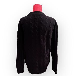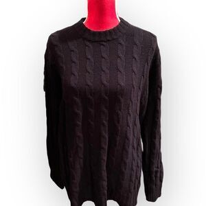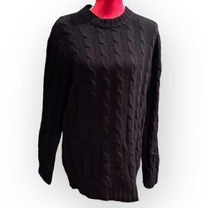 This cozy navy cable knit sweater is perfect for fall!
