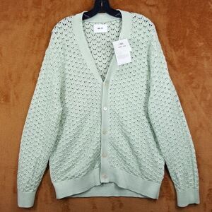 NN07 Sweater Mens XL Lime Green Cardigan Button Up Loose Knit Cotton MANUEL $305