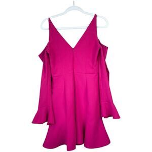 N/NICHOLAS Crepe Flare Mini Dress Hot Pink V Neck Long Sleeve Size 4 NWT