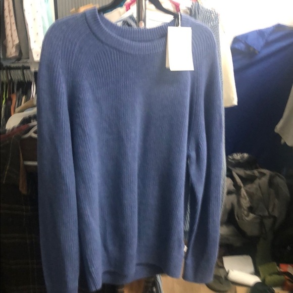 This blue crewneck sweater is crafted from a smooth knit material, offering a classic fit that is both comfortable and stylish. Its ribbed cuffs and waistband add a touch of traditional elegance, making it ideal for cool weather. The simple, clean design ensures it pairs well with any outfit.