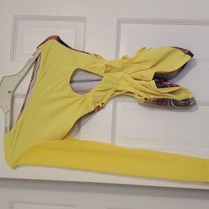 Sexy bartender Dancers EXOTIC OUTFIT Colorful Vibrant Print Women's Long-sleeved Waist-cut jumpsuit S yellow pink purple orange rainbow colors