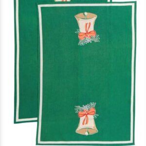MAHOGANY Set of 2 Holiday Jingle Bell Flour Sack Kitchen Towels Christmas Green