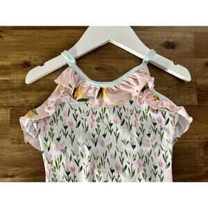 NNWT SweetHoney Mary One Piece Swimsuit Savannah Floral Ruffle White Pink 4T