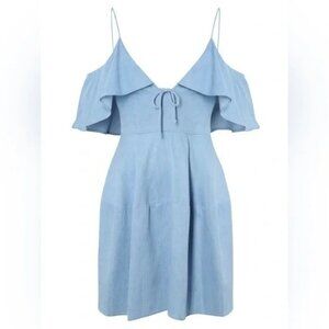 This Nicholas dress is absolutely adorable and perfect for Spring or Summer! It features an off the shoulder style with ruffles, shift style, and mini length.