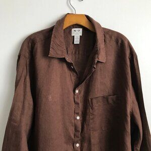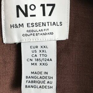 NO 17 H&M Linen Shirt Brown Button Down Long Sleeve Mens 2XL
