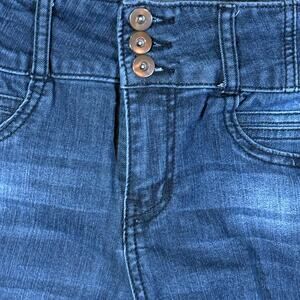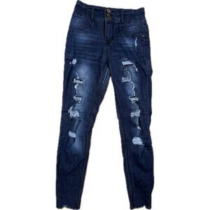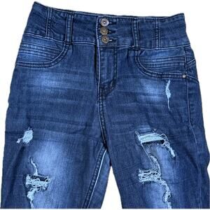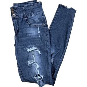 NO BO Corset-Waist Sculpting Skinny Jeans Blue Distressed Frayed Ankle Size 6