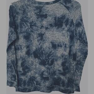 NO BO LONG SLV PULL-OVER CREW NECK TOP, WOMENS, XL(15-17)-BLUE GREY WHTE TIE DYE