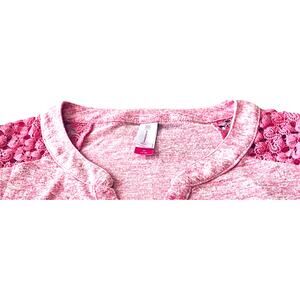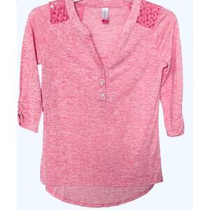 NO BO LONG SLV, PULL-OVER, V-NECK TOP, JUNIORS, M (7/9)-PINK, LACE ON SHOULDERS