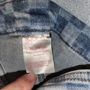 NO BO NO BOUNDARIES Denim Shortall Womens XL Blue Checkerboard Boho Cottagecore