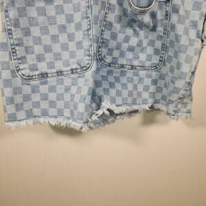 ITEM: NO BO NO BOUNDARIES Denim Shortall Womens XL Blue Checkerboard Boho Cottagecore