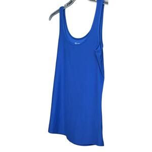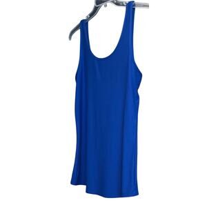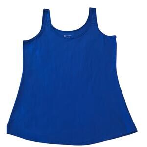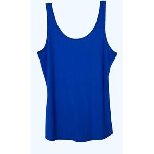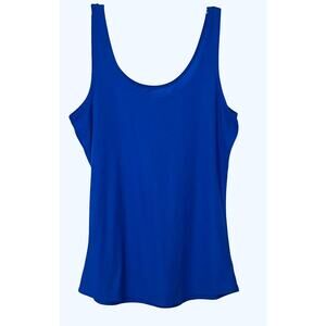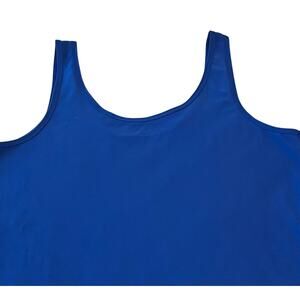 Pretty Solid Blue tank top - pairs nicely with a skirt, trousers or jeans for casual wear - can be worn under a blouse or jacket for layering; Spring & Summer; round neckline front & back; pull-over style; this Polyester/Spandex fabric blend provides a good amount of stretch