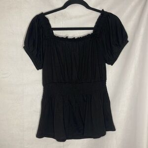 STYLE: No Boundaries boho cinch top, can be worn with sleeves off shoulder or not, flattering style, flowy on bottom, has a good amount of stretch, tie detailing, ruffle hems