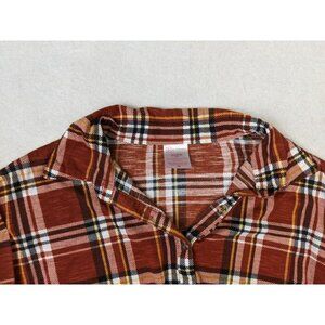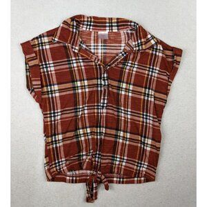 NO BOUNDARIES - BURNT ORANGE PLAID STRETCH KNIT TOP - TIE HEM - SIZE XS