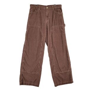 NO BOUNDARIES All Gender Brown Corduroy Baggy Double Knee Carpenter Pants Y2K-Style Skater Grunge Emo SIZE 32x31 ACTUAL 33x29