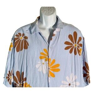 NO BOUNDARIES Men's Short Sleeve Button Down Flower Shirt Blue 2XL
