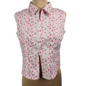 NO BOUNDARIES STRETCH Double Zipper Cotton Sleeveless Top White Pink Junior Med
