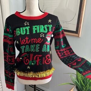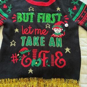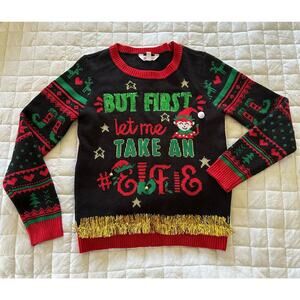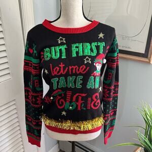 NO BOUNDARIES Sweater Womens Medium Ugly Christmas Garland Bells Sequins Holiday