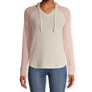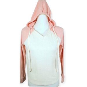 NO BOUNDARIES WAFFLE HOODIE PINK & CREAM SZ.L EUC.