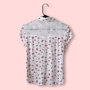 NO BOUNDARIES White Floral Tie Hem Button down Top Size M