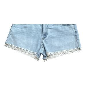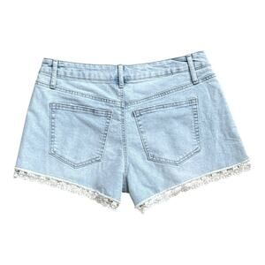 NO BOUNDARIES Womens Size 10 Light Wash Lace Trim Denim Blue Jean Shorts