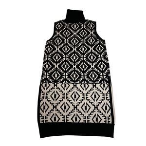 NO BRAND Sleeveless Turtleneck Sweater Top Tunic Size Small Aztec Print Neutral