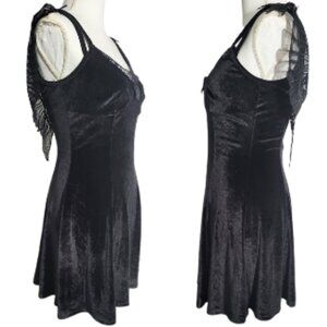 NO BRAND Spaghetti Strap Black Dark Fairy Velvet Laced Wing Dress Women's M