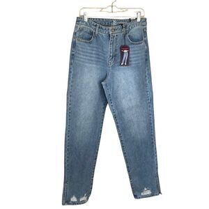NO Boundaries High Rise Leg Jeans Distressed Bleached Denim Size 11 NWT