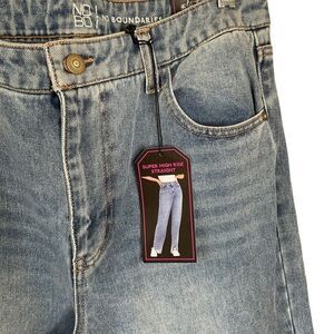 No Boundaries High Rise Leg Jeans Distressed Bleached Denim Size 11 NWT. A brand new pair of super high rise No Boundaries jeans. Straight leg and distressed at the hem. Bleached denim. Size 11