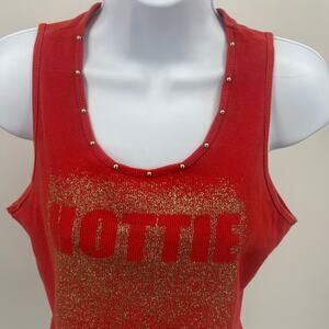 Get ready to shine in this adorable NO Boundaries Hottie Tank Top! This vibrant red tank is perfect for adding a pop of color to any outfit. The gold sparkle detail catches the light beautifully, making it a fun and flirty choice for casual days or nights out. Made from 100% cotton, it's super soft and comfortable, ideal for all-day wear.