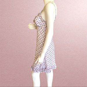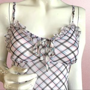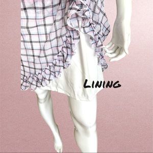 Super cute! Dress has ruffle accents around neckline & hem. Adjustable spaghetti straps. Pastel plaid pattern. Fully lined. Poly/spandex blend for easy fit. Message me if you need measurements. New!