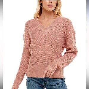 NO COMMENT Juniors' Ikeddi V-Neck Tie-Back Sweater size M cameo brown