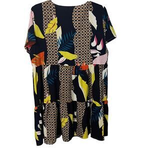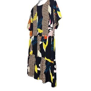 NO MFG. TAG SHORT SLEEVE MIDI FIT & FLARE DRESS, WOMENS, XL, MULTICOLOR ABSTRACT