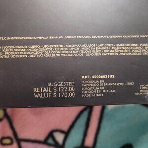 has mini handbag purse (in box) and 3.4 oz floral woody scented body lotion, both unused :)