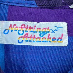 NO STRINGS ATTACHED Shirt Womens S Plaid Button Front Long Sleeve Blue Vtg 80s