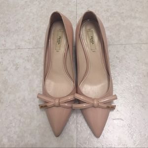 NO TRADE!! Prada Patent Leather Nude Wedge Heels