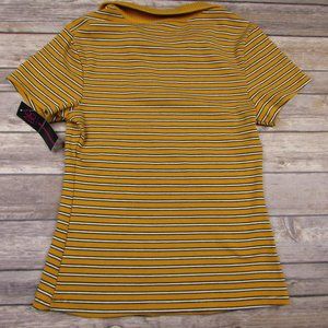 NOBO Gold Striped Pullover Juniors Small Collared V Neck Short Sleeve Top
